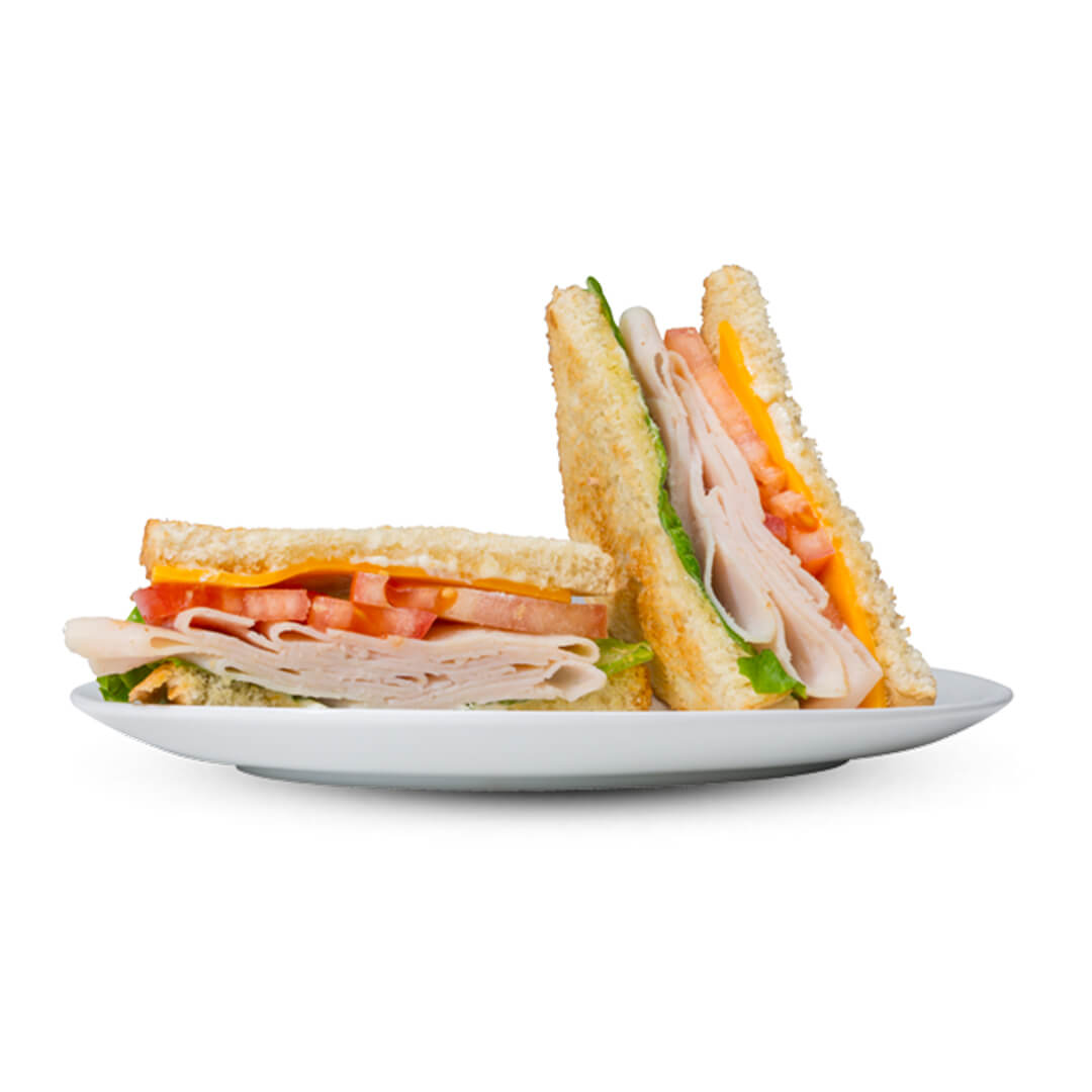 Club Sandwich: A classic stacked with layers of ham, turkey, bacon, lettuce, and tomato, all held together with a perfect trio of bread slices.